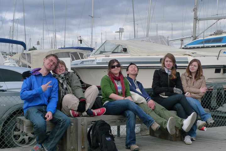 Afterward, we awaited the ferry back to the main part of the city, and just sitting around, suffering through Damon's photo-taking proved to be one of the most enjoyable parts of the day. It had cleared up a wee bit (it had been quite overcast all day, sadly), and so waiting by the water proved yet again to be a peaceful respite from all of my worries of the world.